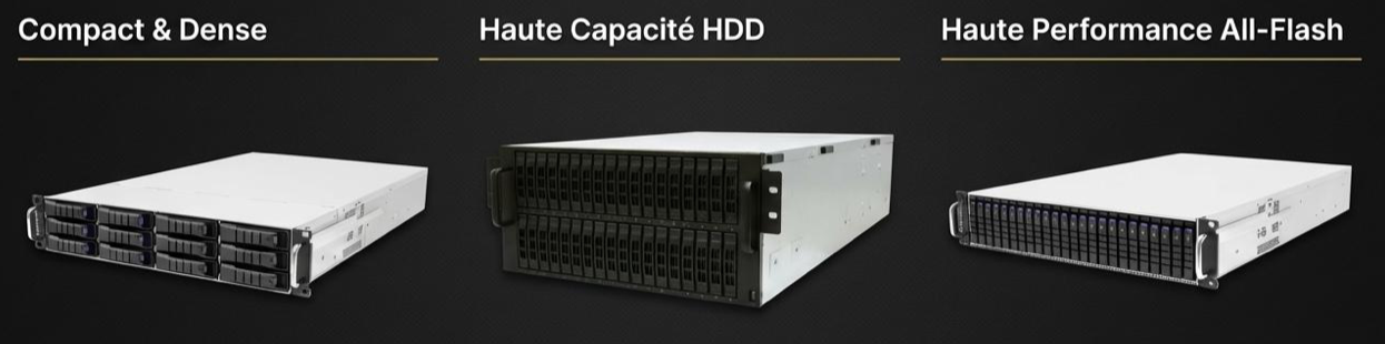 Côté stockage, Néon propose deux grandes familles : les NAS, solutions complètes prêtes à l’emploi, et les JBOD, extensions de capacité connectées à une station ou à un serveur existant, du disque hybride aux solutions full SSD NVMe.