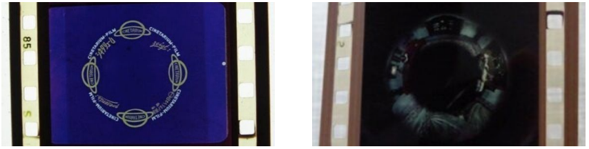 Pour numériser cette galette atypique de 25 minutes, les équipes de la Cinémathèque ont dû adapter leur scanner principal. « Le Lasergraphics Director est conçu pour stabiliser l’image à partir des perforations, précise Nicolas Ricordel. Mais les perforations du Cinetarium étaient identiques à celles du CinemaScope (4 perfs de largeur réduite, presque carrées, pour laisser de la place aux 4 pistes magnétiques, Ndlr), pour un ratio image de 1:1. À notre demande, Lasergraphics a développé un nouveau module logiciel pour reconnaître ces perforations. »