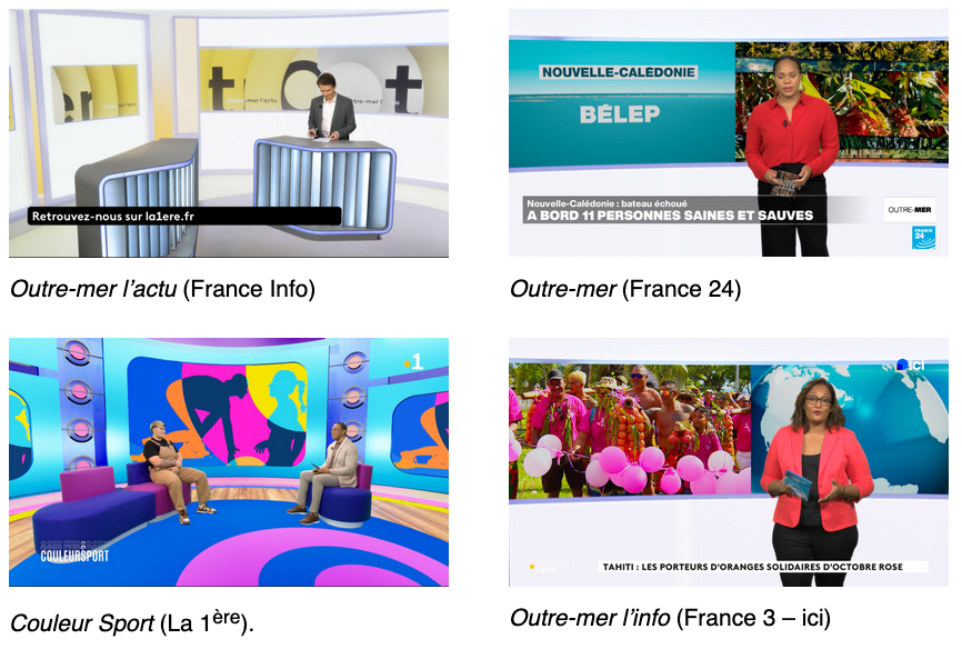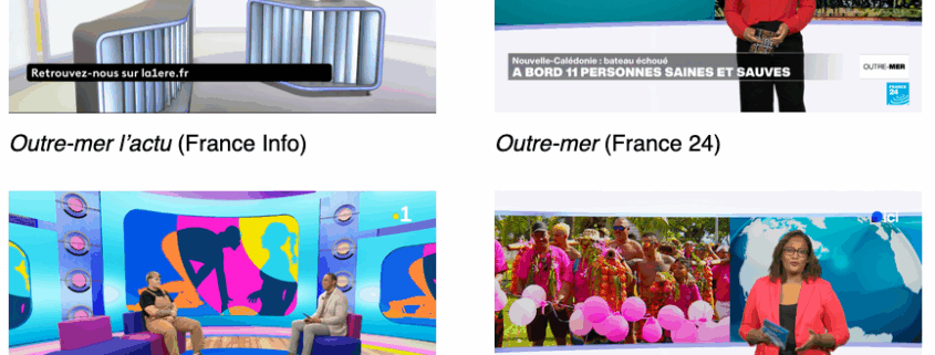 Pour chaque programme tourné dans le nouveau studio du Pôle outre-mer du siège de France Télévisions, les scènes sont chargées depuis le stockage partagé. L’actualité compte un décor décliné via les presets d’Aximmetry en fonction de la chaîne : pour Outre-mer l’info (France 3 – ici), Outre-mer l’actu (France Info), Outre-mer (France 24) et Outre-mer l’hebdo (La 1ère). Un second décor est disponible pour Couleur Sport (La 1ère). Quant au magazine politique Outre-mer, et si on bougeait les lignes ? (La 1ère) dont la dernière édition a été tournée avant l’été dans l’ancien studio de Malakoff, il devrait rejoindre très prochainement l’antenne, en décor virtuel ; tout comme un nouveau magazine santé pour La 1ère, de 26 et 52 minutes, actuellement en cours de tournage. Ces deux programmes ajoutent ainsi deux décors virtuels supplémentaires.